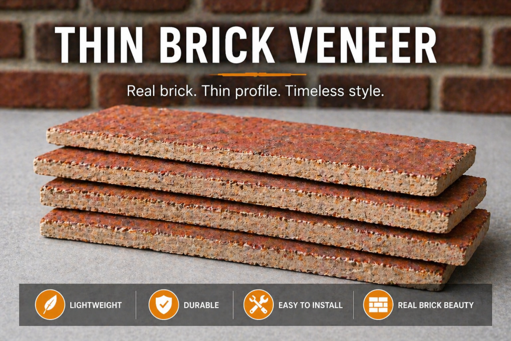 It is a thin layer of brick installed on the surface of a wall instead of using full structural bricks. It gives the appearance of a solid brick structure without the weight and cost.